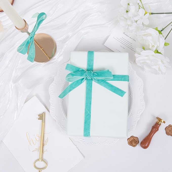 Vintage Turquoise Blue Velvet Ribbon Christmas Ribbon for Gift Wrapping Crafts Christmas Tree Ornaments Garland Decorations, 5/8 Inch X 25Yd