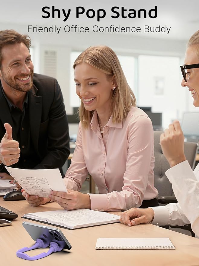 - Patented 360° Rotation & Adjustable Angle Phone Holder for Desk: Discover unparalleled viewing flexibility with our CALDEVER Shy sign thumbs phone stand, featuring an exclusive 360-degree rotating head and unique adjustable wrist angle; Seamlessly switch between horizontal and vertical screens, finding your perfect 0-40° viewing angle for any task; This universal cell phone holder ensures ultimate stability for your phone or iPad mini, making it the ideal phone stand for desk or table