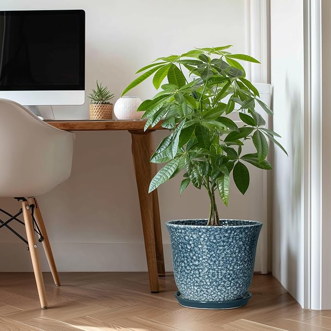 - Ideal Size: These ceramic pots for plants measure 12.4" x 12.4" x 10.3" and comes with drainage holes, a ceramic plant saucer, a drainage net, creating a healthier environment for plants while keeping your space neat and clean