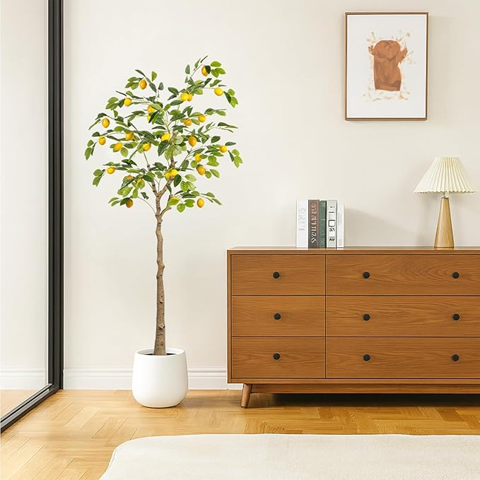 - 【Realistic Faux Plants】This 5FT tall faux Lemon tree crafted from silk fabric with delicate veins. The irregular trunks add to the authentic look, making this tree incredibly realistic.
