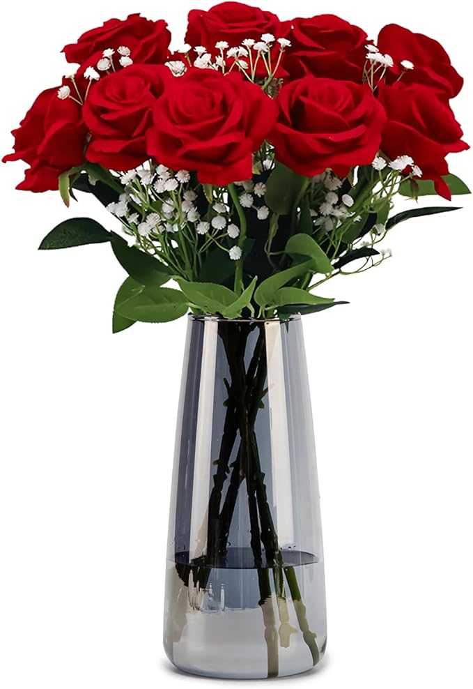 Crystal Clear Glass Vase, Flower Vase for Table Centerpiece Home Decor, Modern Vases for Living Room, Wedding, Office, Coffee Table, Birthday Housewarming Gift, 8.3inch (Gray)