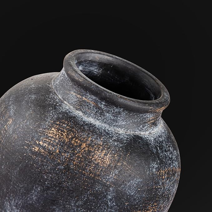 Ceramic Rustic Vase, 6 Inch Small Flower Farmhouse Vase Decorative Vase Short Pottery Vases for Home Decor Table Living Room Entryway Mantel Bookshelf Bedroom Bathroom Kitchen - Black