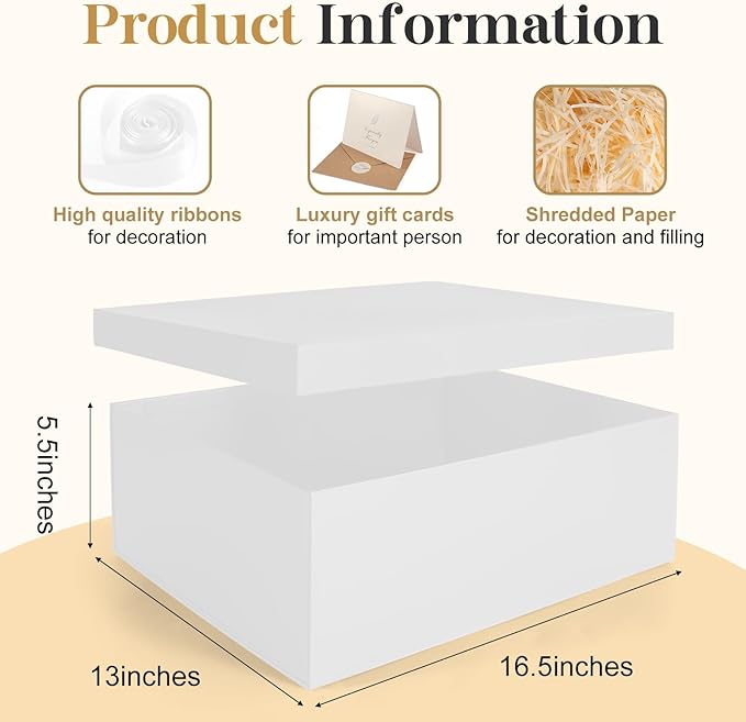 Gift Box, 16.5x13x5.5 inches Large White Gift Boxes with Lids for Presents, Birthday Box Contains Card Ribbon Shredded Paper Filler, Gift Wrap Boxes for Valentine Mother's Day Christmas Anniversary