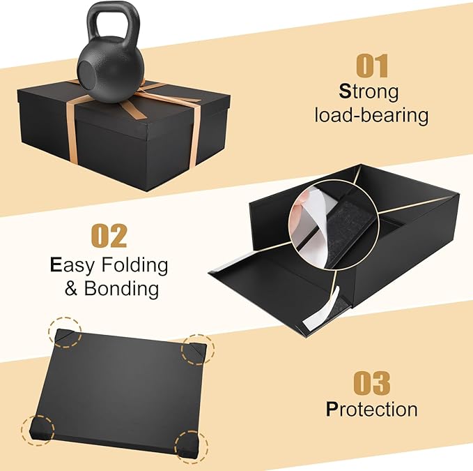 - HIGH QUALITY: Our gift box is made from high quality thick and recyclable cardboard material with a glossy surface, which is thick and tear-resistant, ensuring your gifts remain secure. It is ideal for both wrapping presents and for long-term storage of items.