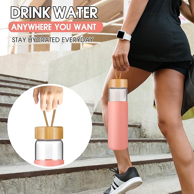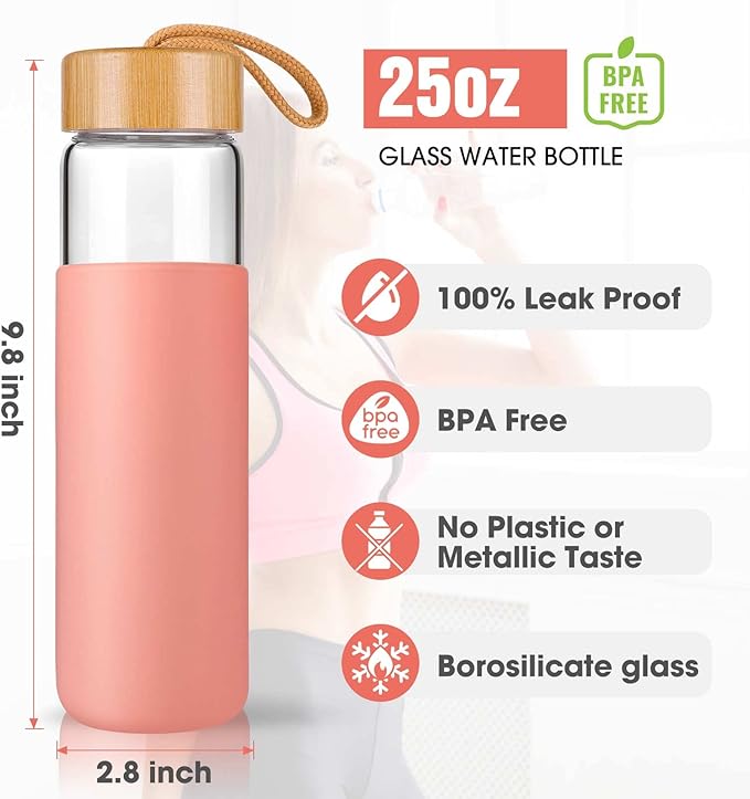 - SIP IN THE SUN - Leaching & BPA-Free Glass: Stay hydrated throughout your day and leave the chemical leaching worries to us as this leak proof water bottles is engineered with prime Borosilicate glass shielding your water from harmful chemical leaching and bacterial growth to enjoy your sunny adventures peacefully.