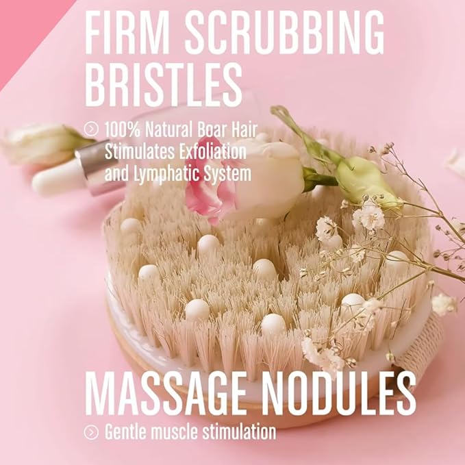 - ๐งด Gentle Yet Powerful Exfoliation Our natural bristles strike the perfect balance between firmness and gentleness, offering effective exfoliation without irritation. ๐โโ๏ธ They sweep away dry, flaky skin, unclog pores, and leave your skin silky smooth to the touch. Over time, this gentle exfoliation helps prevent ingrown hairs and rough patches, while keeping your skin radiant and healthy-looking. With consistent use, youโll enjoy skin that feels refreshed and renewed daily.