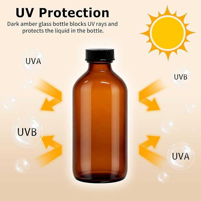 - Maintain Optimal Freshness:Amber glass effectively blocks UV light, helping preserve the flavor, potency, and quality of your homemade extracts, kombucha, herbal remedies, syrups, and beverages over time.
