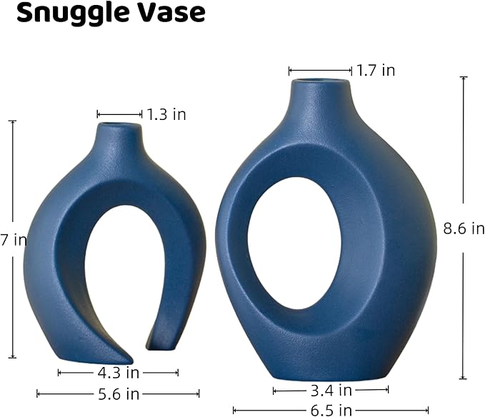- 🌷【Size】-The set includes matte Navy Blue 1 each handmade vases. The taller vase measures 6.3" wide x 8.4" tall with a 1.3" vase neck. Shorter vase measures 5.4" wide x 6.8" tall with a 0.9" vase neck