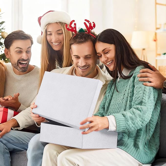 - Large Size for Versatile Use: The white boxes for gifts measure 16.5'' x 13'' x 5.5'', offering big capacity. It can hold items of different sizes such as wine bottles, chocolates, skincare, cosmetics, snacks, plush toys, clothing, and more.