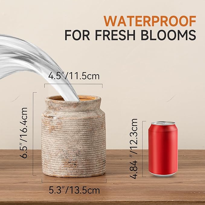 - 【Style-Adaptable Décor】 Neutral tones and rustic texture make it easy to pair with farmhouse, boho, vintage, cottagecore, or modern interiors. Whether filled with flowers or standing alone, it enhances any home décor style.