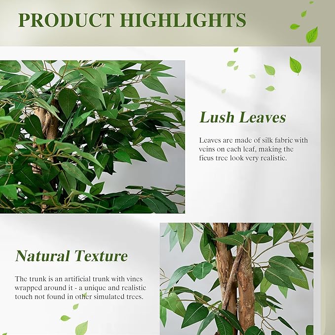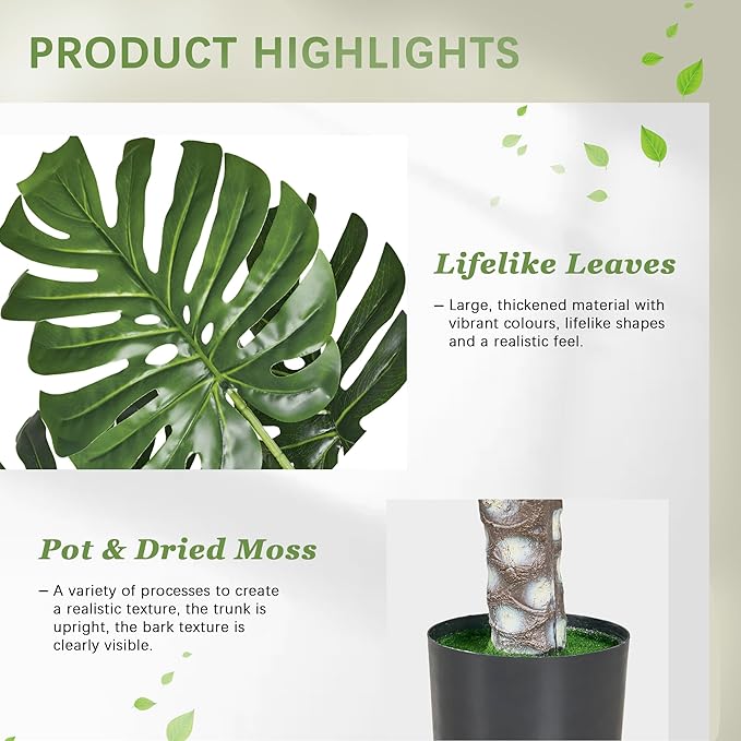 - 【Free Maintenance】This artificial ficus tree and monstera are incredibly easy to maintain. Say goodbye to the hassle of watering or pruning! It’s fade-resistant, dust-resistant, and even flame-resistant, offering durability without the need for regular care. Simply dust it occasionally to keep it looking fresh and vibrant for years to come.