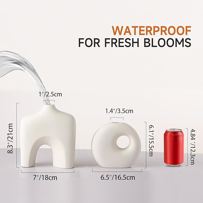- 💧【Waterproof & High-Temperature Fired】Each vase is fired at high temperature for strength and durability, then coated with a waterproof interior glaze so you can display fresh blooms with confidence. The matte texture feels smooth and luxurious to the touch, while the polished base protects your surfaces.