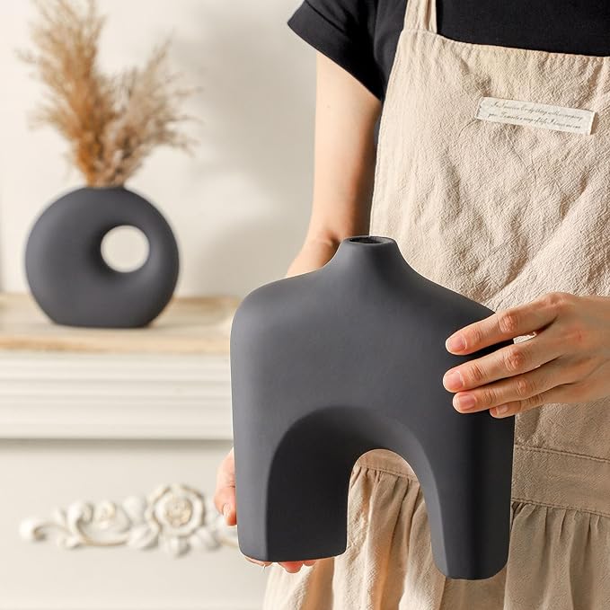 - 🏺【Modern Sculptural Design】Featuring soft, flowing curves and a hollow center, these vases combine minimalist beauty with artistic form. Their clean silhouette adds elegance and visual interest — even without flowers.
