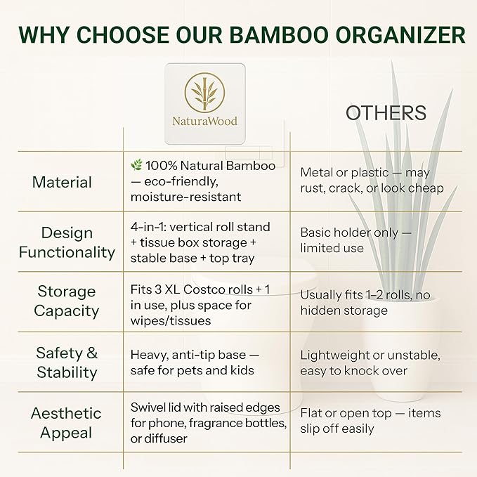 - PRACTICAL FEATURES: Built-in shelf keeps items such as your phone within reach, while the smooth rotating bamboo toilet paper rod ensures smooth, effortless dispensing with every pull
