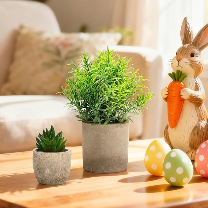 - Durable and Easy to Maintain: Made of high-quality plastic and sturdy cement pots, these faux plants are long-lasting, dust-resistant, and maintenance-free. Simply wipe occasionally to keep them looking new.