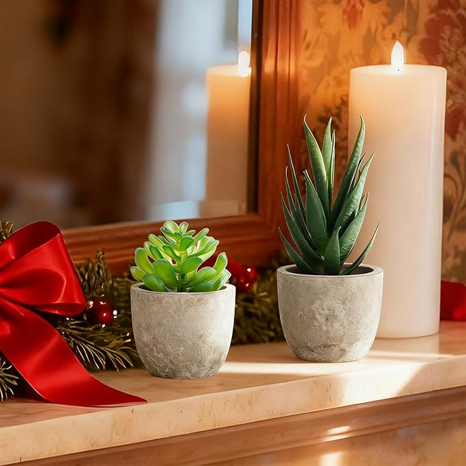 - Modern Minimalist Design: The sleek cement pots and clean lines create a chic, minimalist aesthetic that complements modern, farmhouse, or Scandinavian interiors. Ideal for shelves, bookcases, offices, or coffee tables.