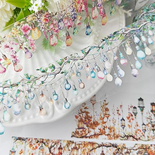 - Christmas tape stickers set:You will receive 3 rolls of light themed tape stickers,vibrant courtyard lights and colorful night lights add radiance to your scrapbook,junk journal,diary