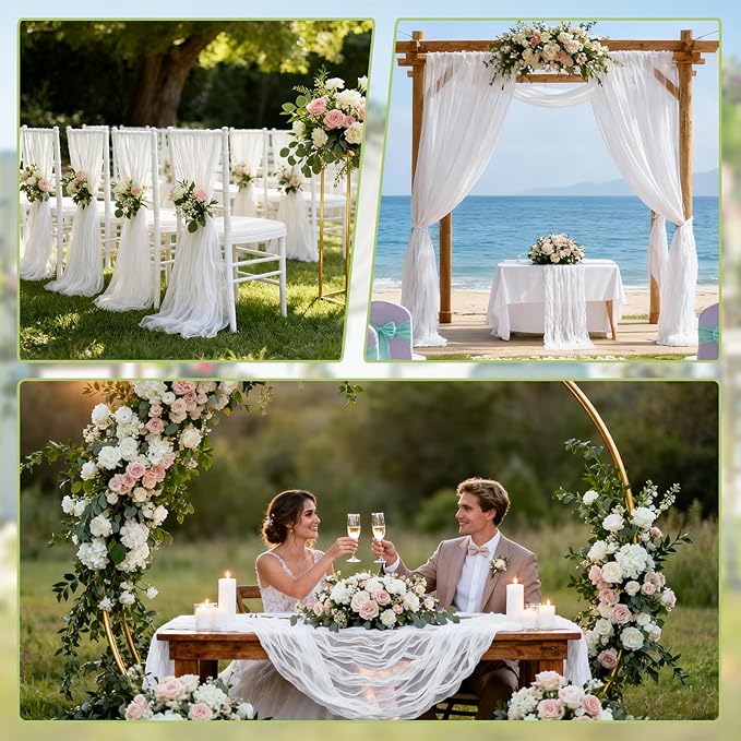 - 【Premium & Durable Fabric】Crafted from 100% breathable cheesecloth with reinforced stitched edges to prevent fraying. The delicate texture offers both flexibility and lasting structure while draping elegantly over any table.