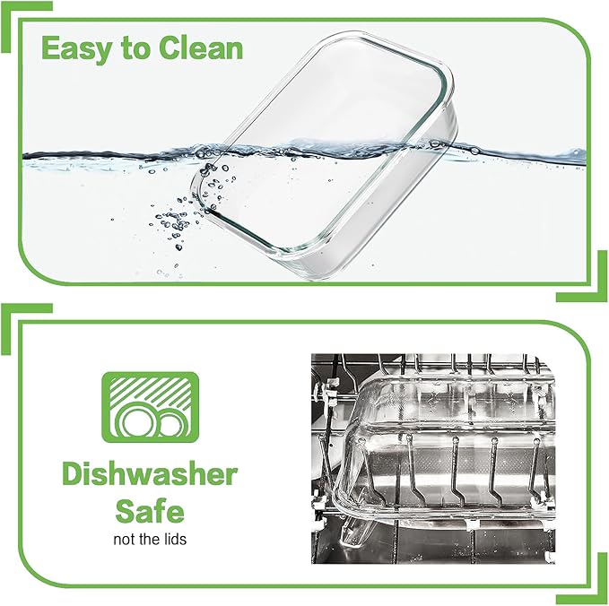 - [BPA Free & Easy to Clean] BPA-Free plastic locking lid is safe as well as leakproof. Crystal clear borosilicate glass is easy to clean without absorbing stains or smells. They are dishwasher safe to instead of hand washing. Also the silicone seal is removable for your to clean and dry it. In order to prevent seal sticking to the containers, please must wash the lids and containers before put them away.