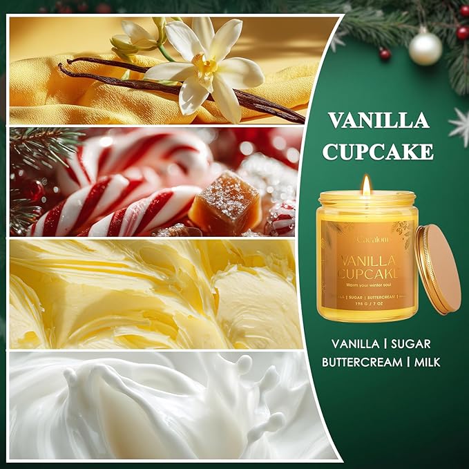- Enchanting Christmas Candles : VANILLA CUPCAKE - Indulge in the enchanting aromas of our Christmas Candles, blending vanilla sugar buttercream milk. These scented candles for home create a warm, romantic ambiance, perfect for setting a cozy holiday mood. Let our winter candle "Warm Your Winter Soul" and transform your space into a festive sanctuary. It's the perfect house decor for the season