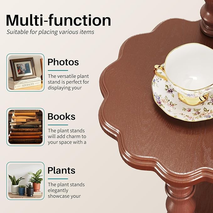 - Elegant Vintage Design: Featuring classic Roman column legs and a retro-inspired silhouette, this plant stand adds a touch of antique charm to your home. It’s not just a plant stand—it’s a piece of decor that elevates your interior style