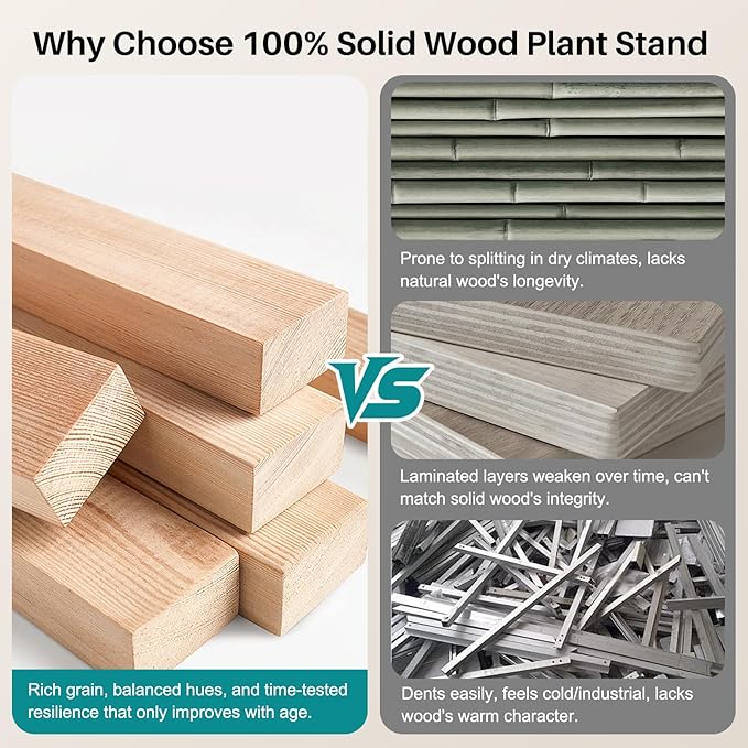 - Solid Wood Construction & Premium Finish: Built from 100% solid rubber wood, this heavy duty plant stand offers remarkable stability and a 110 lbs weight capacity. It's built to last, resists wobbling, and the smooth finish highlights the natural wood grain for a premium feel