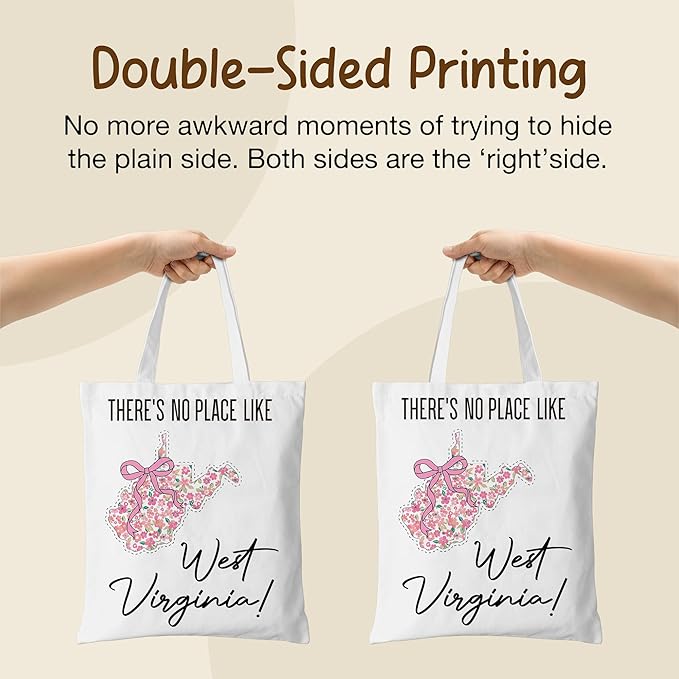 Floral West Virginia Map Bow Canvas Tote Bag for Books, Travel & Daily Use, Magnetic Buckle, 16x14 Inch(003)