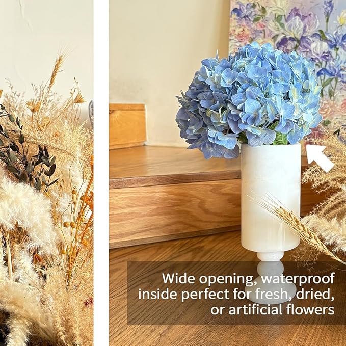 White Vase 100% Marble for Home Centerpiece for Dining Table, 10 inch Flower Vase or Desk Décor for Bouquet and Pampas Grass, French Boho Style