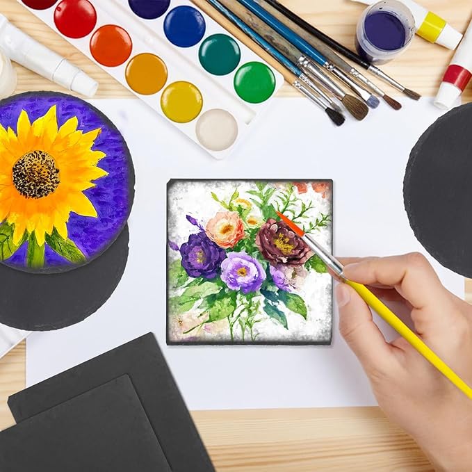 - 【 Versatile Application】 These 4 inch slate coaster are not just for drinks. They're excellent for engraving, carving, home decor, and handicraft classes. Transform them into personalized gifts for loved ones, or use them as photo props to add a unique touch to your photos.