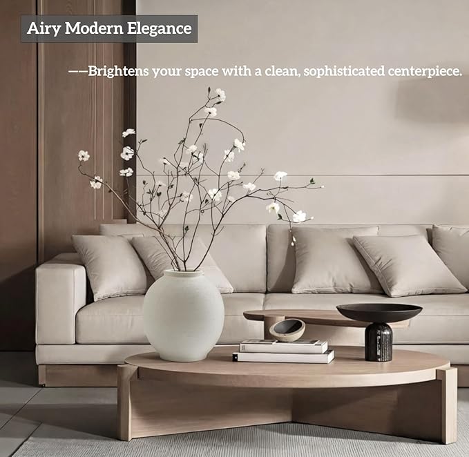 - Modern Farmhouse Elegance - Features a minimalist silhouette with a beautifully textured, matte finish. This Sandstone White vase effortlessly blends rustic charm with contemporary design, making it a versatile piece for any home style from boho to mid-century modern.