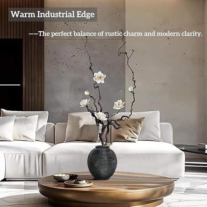 - Modern Farmhouse Elegance - Features a minimalist silhouette with a beautifully textured, matte finish. This Black Bronze vase effortlessly blends rustic charm with contemporary design, making it a versatile piece for any home style from boho to mid-century modern.