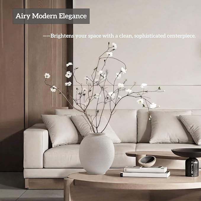 - Modern Farmhouse Elegance - Features a minimalist silhouette with a beautifully textured, matte finish. This Sandstone White vase effortlessly blends rustic charm with contemporary design, making it a versatile piece for any home style from boho to mid-century modern.