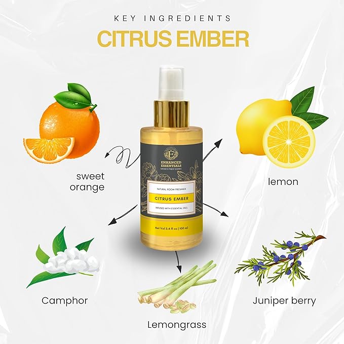 - Key Features: Crafted with pure essential oils only Free from synthetic fragrances, parabens, and phthalates Long-lasting natural aroma (up to 8 hours on fabrics) Mood-lifting citrus profile with bright and clean notes Suitable for rooms, linens, cars, closets, and more Non-toxic, hormone-friendly formulation