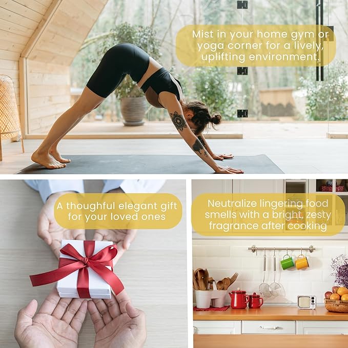 - Key Benefits: Uplifts mood and boosts mental clarity Energizes your surroundings with a fresh citrus spark Safe to use around children and pets (use as directed) Supports better indoor air quality than chemical-based sprays Promotes a more mindful and healthy living space