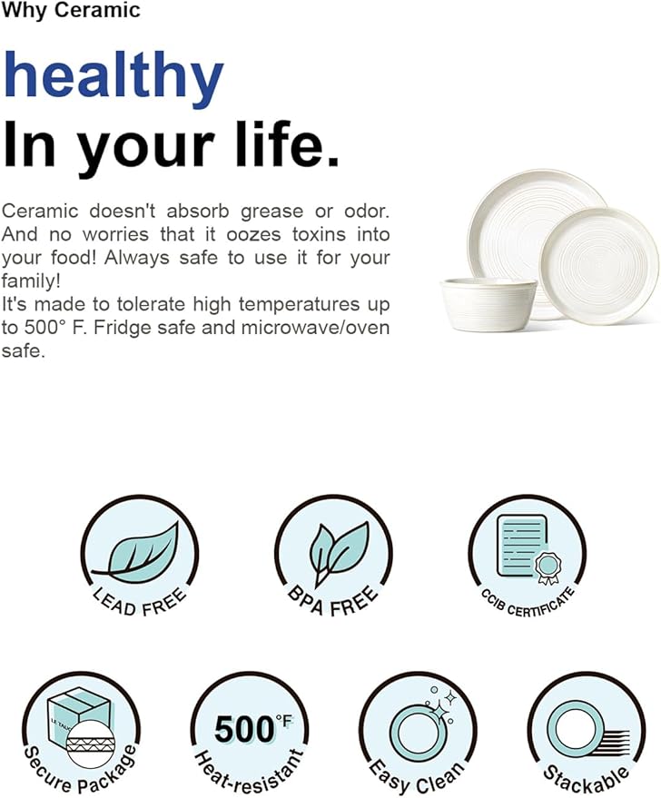 - Safe & Easy Care: High-fired ceramic stoneware with a smooth, non-porous glaze that is lead & cadmium free for everyday peace of mind. Dishwasher and microwave safe, and oven safe when used according to care notes—reheat last night’s stew, wash everything together after family dinner, and move on with the evening