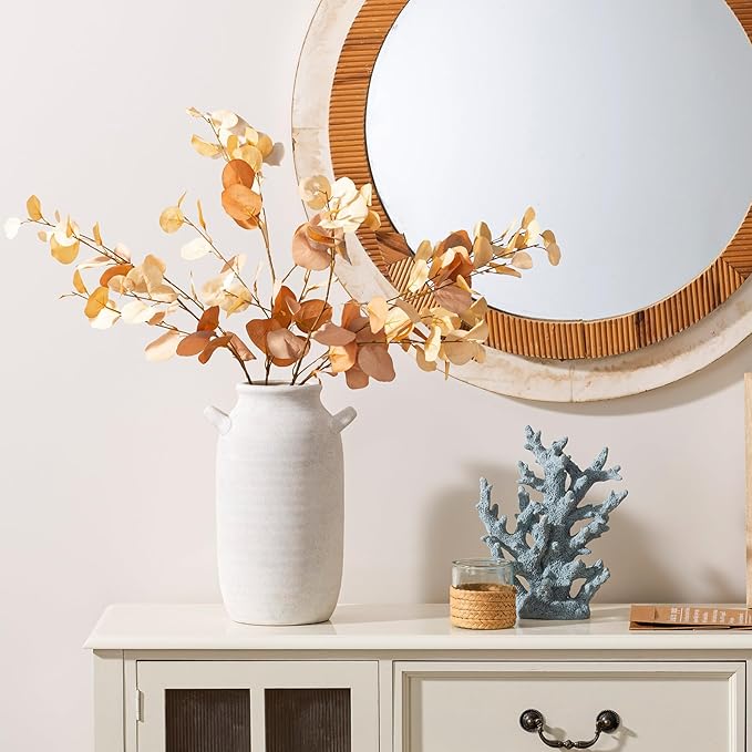 Large Flower Vase Home Decor - 12 inch Tall Ceramic Farmhouse Rustic Table Vases with Handle Living Room Decoration Decorative Rustic Pottery for Floor Kitchen Shelf Coffee Dining Desk Fireplace