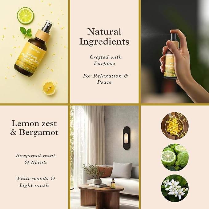 Purple Canyon Lemon Bergamot Mint Room Spray — 4 oz Natural Linen & Room Freshener — Bright Citrus & Mint Fragrance Mist — Energizing & Crisp — Premium Natural Fragrance Oils