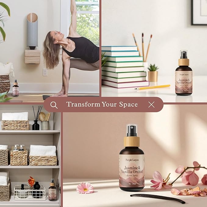 Purple Canyon Jasmine & Vanilla Orchid Room Spray — 4 oz Natural Linen & Room Freshener — Floral & Woody Fragrance Mist — Elegant & Refreshing — Premium Natural Fragrance Oils