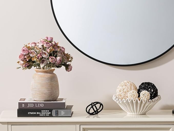 - Ceramic Vase Home Decor --- More than a vase for flower, this ceramic vase can as utensil holder or wonderful home décor, as its 100% hand-painted surface makes each vase unique.This vase is perfect forarranging artificial plants, pampas grass or fresh flowers and plants, can be arranged individually or in combination, as a room decor, home decor, living room decor, farmhouse decor, table decor, bookshelf decor,entryway decor, kitchen decor, boho decor, house decor, office decor,shelf decor and more.