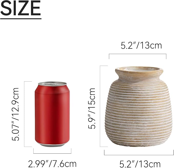 - For Multiple Home Décor Styles --- These decorative vases has excellent decorative effects due to its unique shapes and colors, which is the perfect home décor even without flowers. Whether your style is bohemian, modern farmhouse, rustic, or homey, they all fit in perfectly show off your lifestyle and decorative sense of style.(Length x Diameter=6 x 5.2").