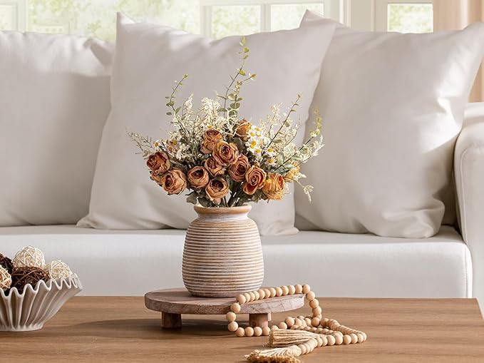 - Perfect for Fresh Plants with Its Waterproof Coating --- This rustic vase is made of high quality qualified terra cotta material by high temperature firing, which has excellent corrosion resistance and is more sturdy and durable. With a waterproof coating inside, this flower vase can be filled with water directly to keep your flowers and plants fresh and comfortable. This vase decor can also hold artificial plants or dried flowers in very coordinated colors and will make a great accent in home decor.