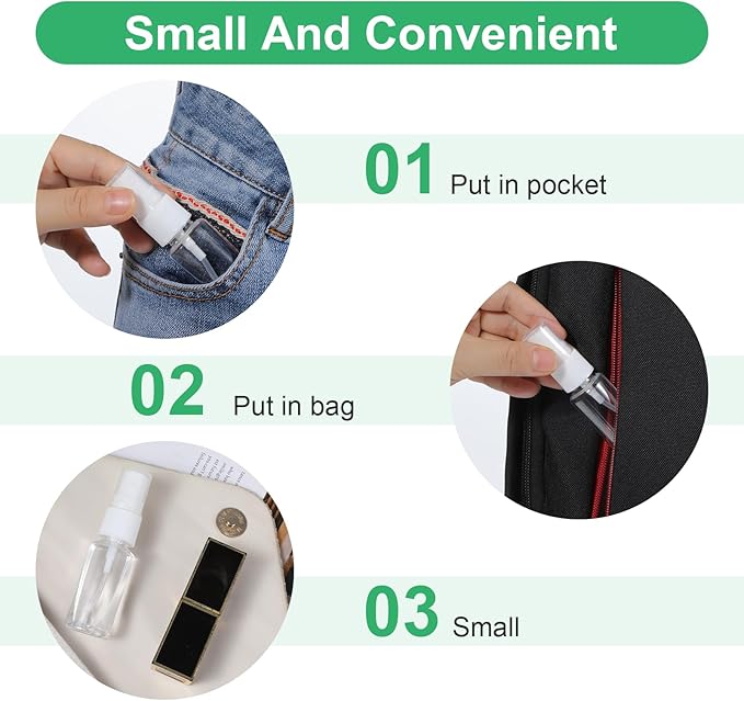 - 【Mini Spray Bottle】Our mini spray bottles offer unmatched versatility, ideal for storing perfumes, skincare products, or cleaning solutions. Their convenient design allows for easy access and application, making them indispensable for those who value efficiency in their daily routine.