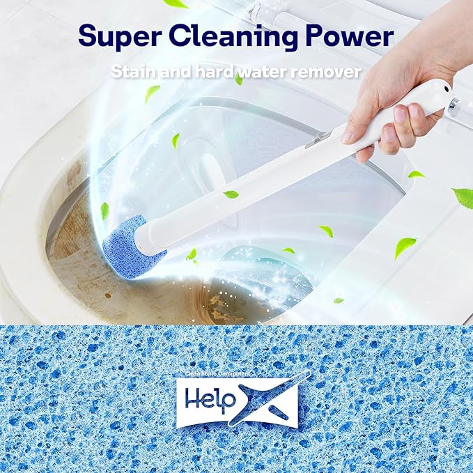 - 【One-Touch Head Ejection】: Pumice stone for cleaning after use simply press the button on the sturdy 2-piece handle to instantly drop the used pumice head into the toilet – no messy hand contact required! Enjoy a cleaner, more convenient cleaning experience