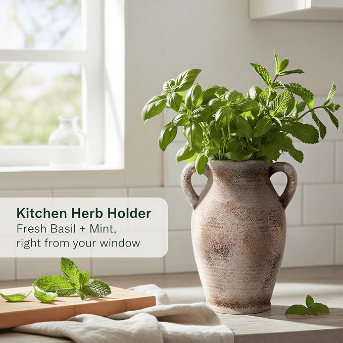 - Space-Saving Pottery Vase & Shelf Decor – Compact 6.9″L x 5.3″W x 8.1″H fits desks, windowsills, bookcases and floating shelves, ideal for flower arrangements or single-stem display.