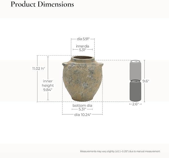 - Balanced Decorative Size: Measuring 11"H × 10.6"W, this round vase offers a sturdy presence that fits beautifully on entryway consoles, tabletops, or patio corners as home décor accents.