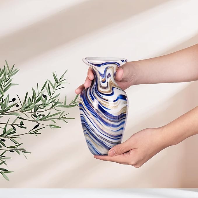 - 【High-quality】 Crafted using hand-blown glass art techniques, each vase is a unique work of art with a flat bottom for stable standing. High-quality glass material ensures the long-lasting use and exquisite appearance of the vase, creating vibrant colors that enhance the home decoration effect.