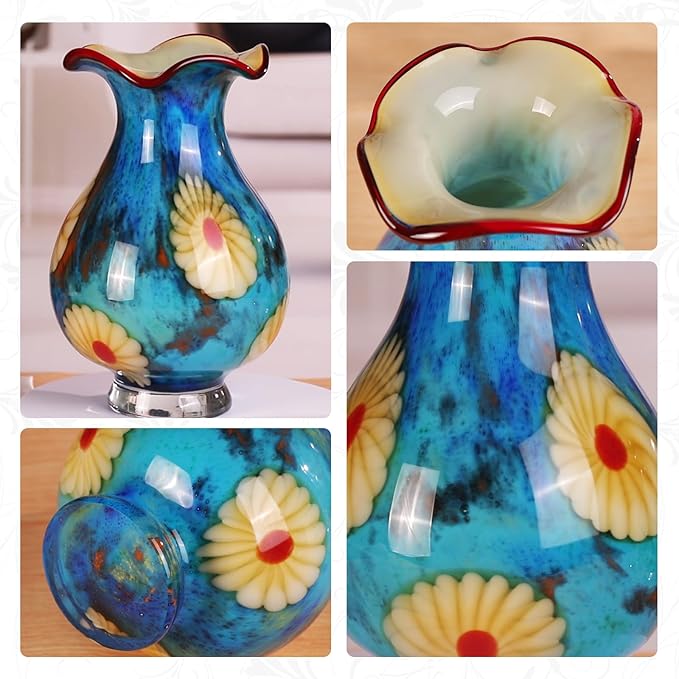 - 【High-quality】 Crafted using hand-blown glass art techniques, each vase is a unique work of art with a flat bottom for stable standing. High-quality glass material ensures the long-lasting use and exquisite appearance of the vase, creating vibrant colors that enhance the home decoration effect.