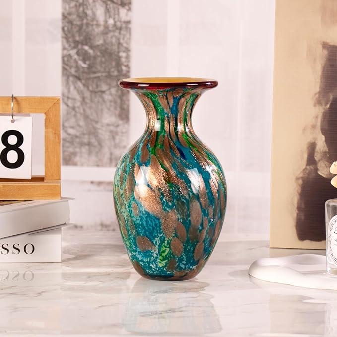 - 【High-quality】 Crafted using hand-blown glass art techniques, each vase is a unique work of art with a flat bottom for stable standing. High-quality glass material ensures the long-lasting use and exquisite appearance of the vase, creating vibrant colors that enhance the home decoration effect.