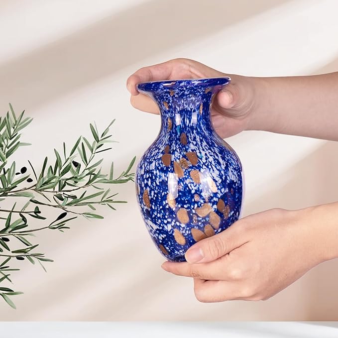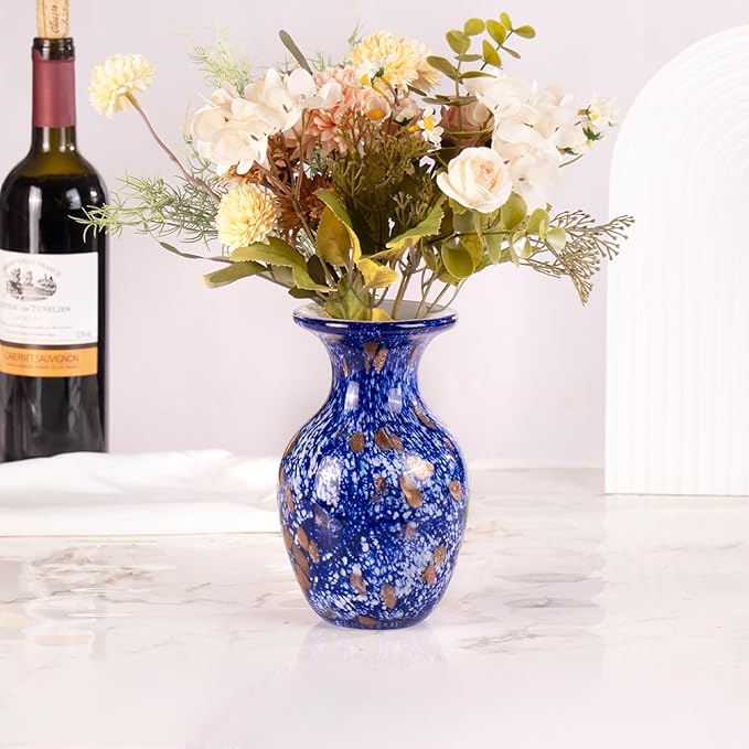 - 【High-quality】 Crafted using hand-blown glass art techniques, each vase is a unique work of art with a flat bottom for stable standing. High-quality glass material ensures the long-lasting use and exquisite appearance of the vase, creating vibrant colors that enhance the home decoration effect.