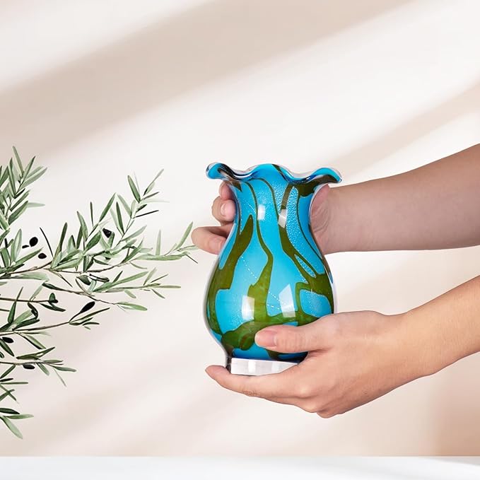 - 【High-quality】 Crafted using hand-blown glass art techniques, each vase is a unique work of art with a flat bottom for stable standing. High-quality glass material ensures the long-lasting use and exquisite appearance of the vase, creating vibrant colors that enhance the home decoration effect.